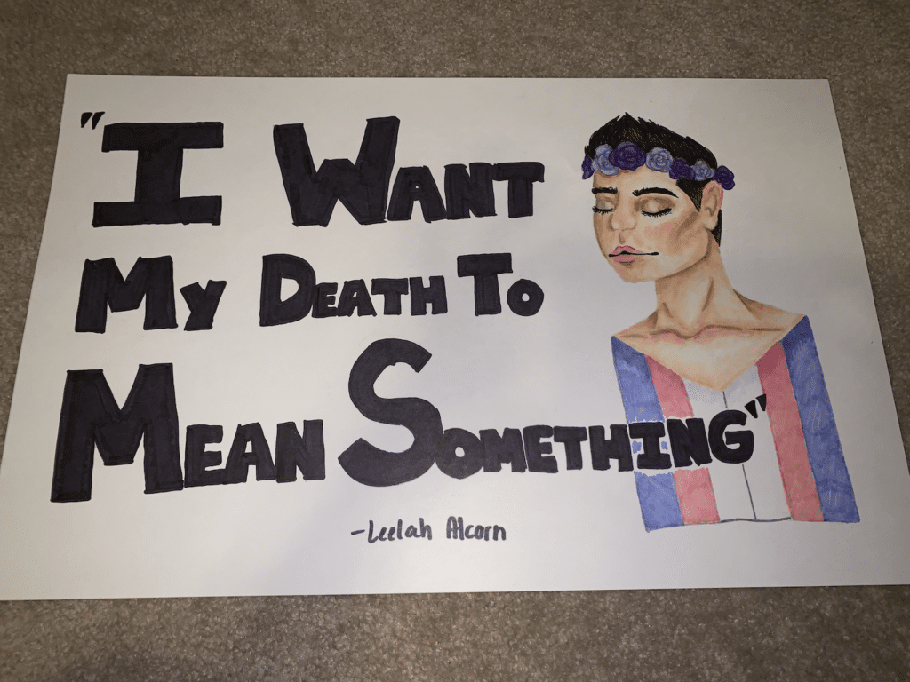 At 2:30 AM on December 28, 2014 Leelah Alcorn, a 17-year-old transgender girl, killed herself by walking in front of a tractor trailer on the Interstate near her home.