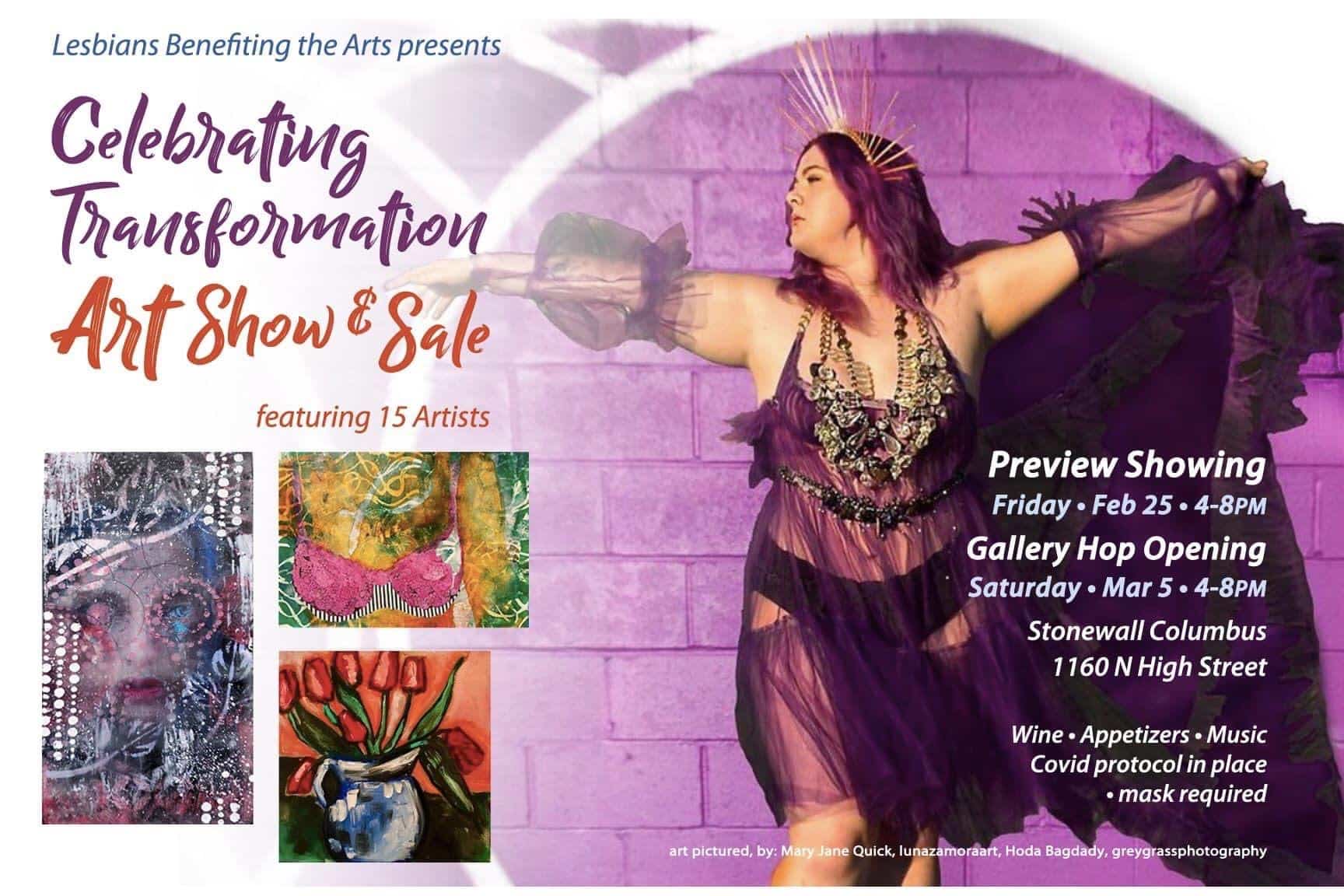 - Though viewing the show is free, donations to Lesbians Benefitting the Arts are appreciated. Not being able to have events due to the pandemic also means fewer opportunities to receive donations. As an all-volunteer-run nonprofit, Lesbians Benefitting the Arts relies on generous support to bring events like Celebrating Transformation to life and ensure the events’ success. Donate here.
