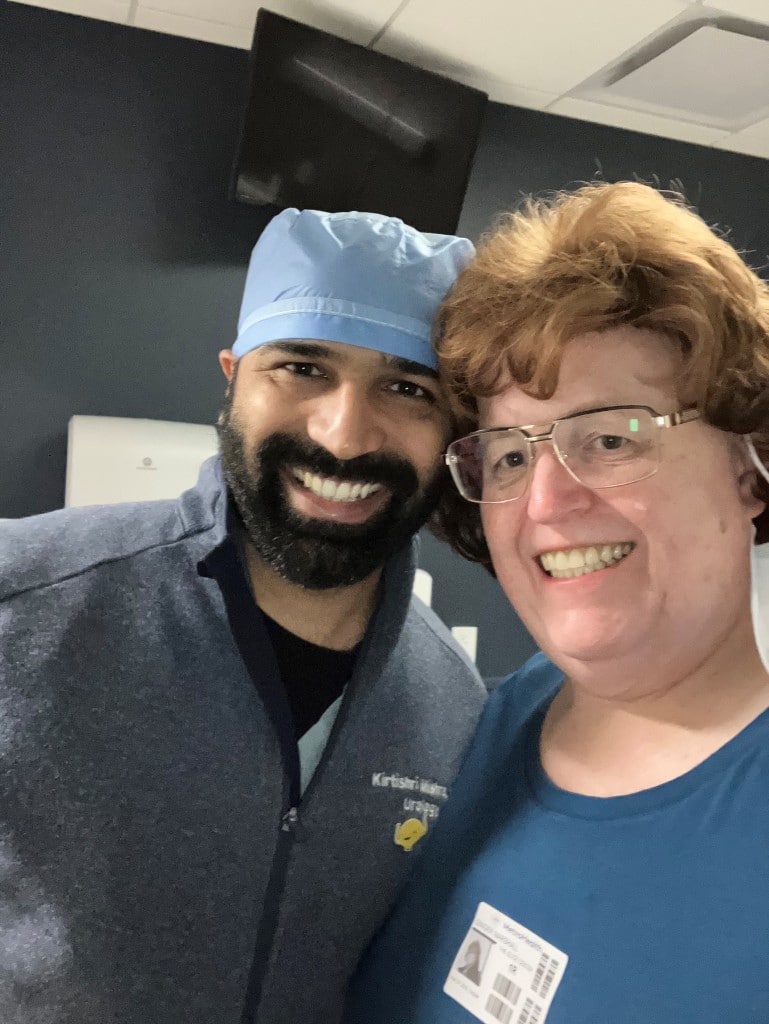 I met Dr. Mishra on the phone. I knew he was coming to MetroHealth to start a program. And I’m the admin coordinator here at the hospital for the Pride Network and was working with him. But then I went to see him as a patient. By this point I was very comfortable with what the procedures were and how it would be handled. And he agreed that, yes, I would be a candidate. We talked about things like my diabetes and that it needed to be under control. And where my weight was because that has a major impact on healing of the area. I also needed to get clearance letters so I had to seek out some therapists.