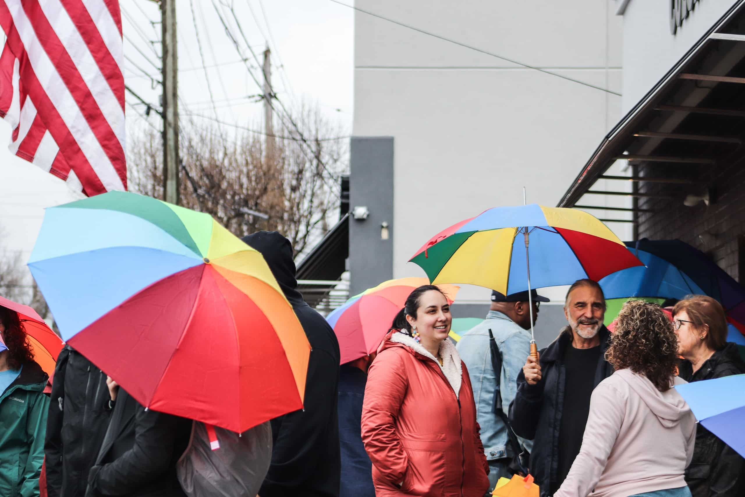 In Fairview Park – a suburb southeast of Cleveland – around 30 LGBTQ+ supporters gathered outside Colors+ Youth Center, bearing rainbow flags, parasols and a determined spirit.