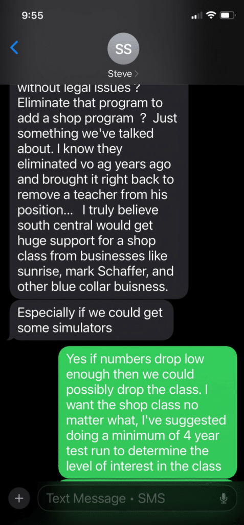 “Eliminate that program to add a shop program? Just something we’ve talked about,” he said. “I know they eliminated [vocational agriculture] years ago and brought it right back to remove a teacher from his position.”