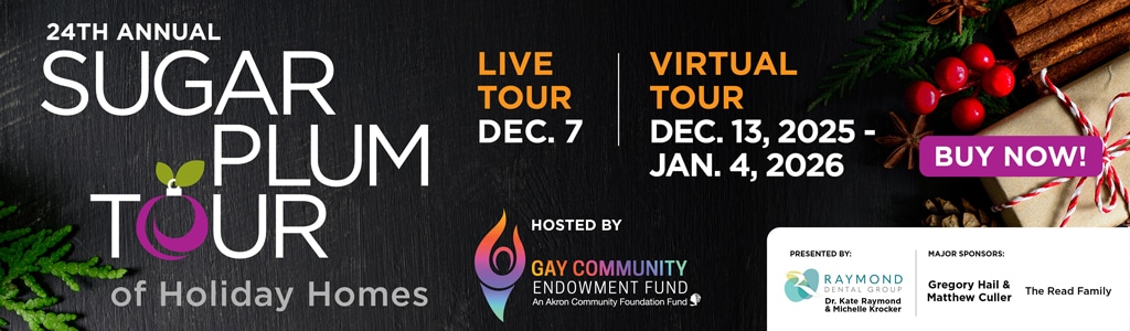 Tickets are on sale for the Gay Community Endowment Fund’s 24th annual Sugar Plum Tour of Holiday Homes, Greater Akron’s premier holiday home tour. This year’s live tour will feature five festively decorated homes on Sunday, Dec. 7, from noon to 5 p.m. The virtual tour will feature seven intimate video tours, including two homes filmed exclusively for the virtual tour, and can be viewed throughout the holiday season from Dec. 13 through Jan. 4.
